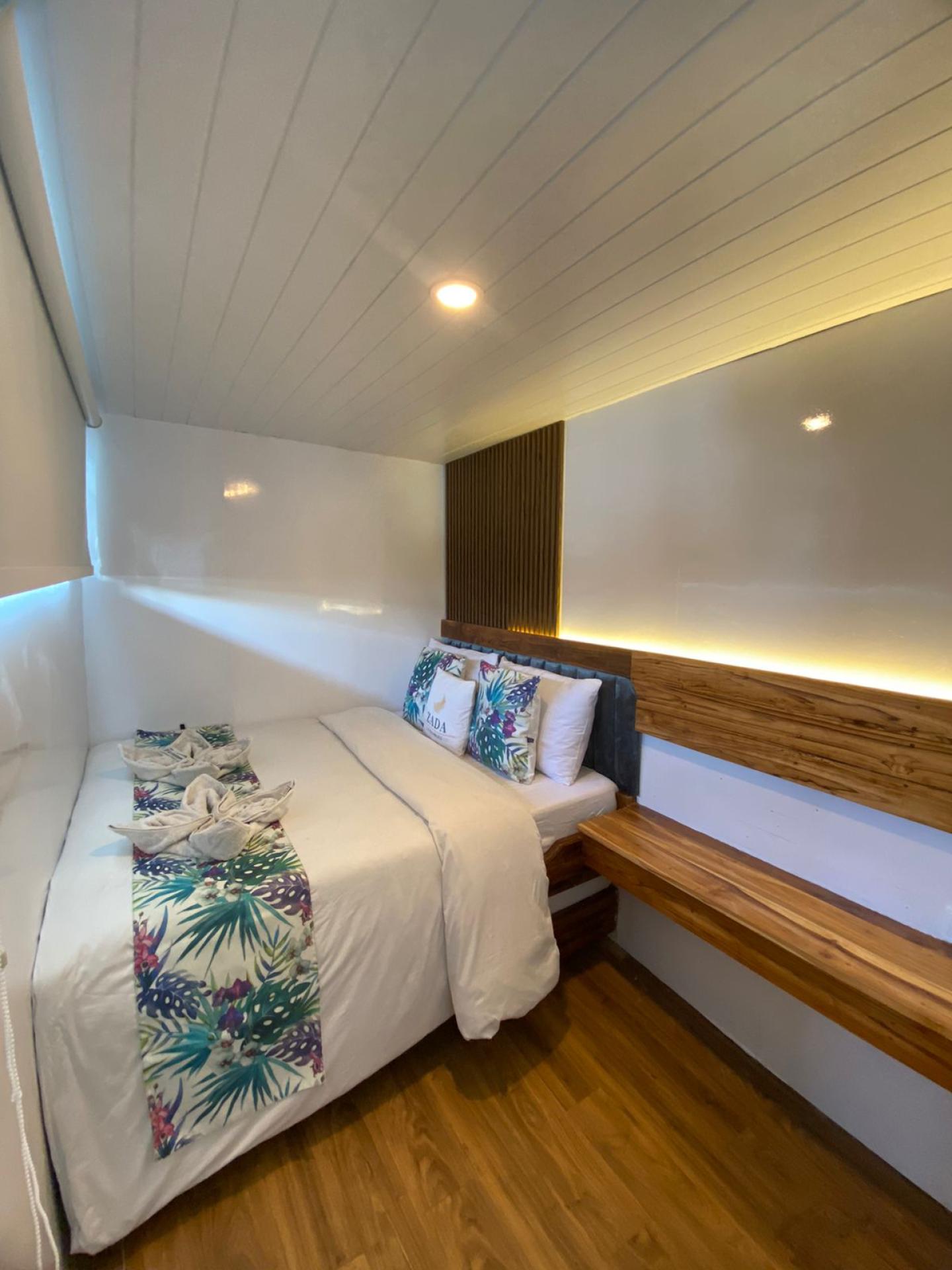 - 6 private cabins with AC, private bathroom, water heater